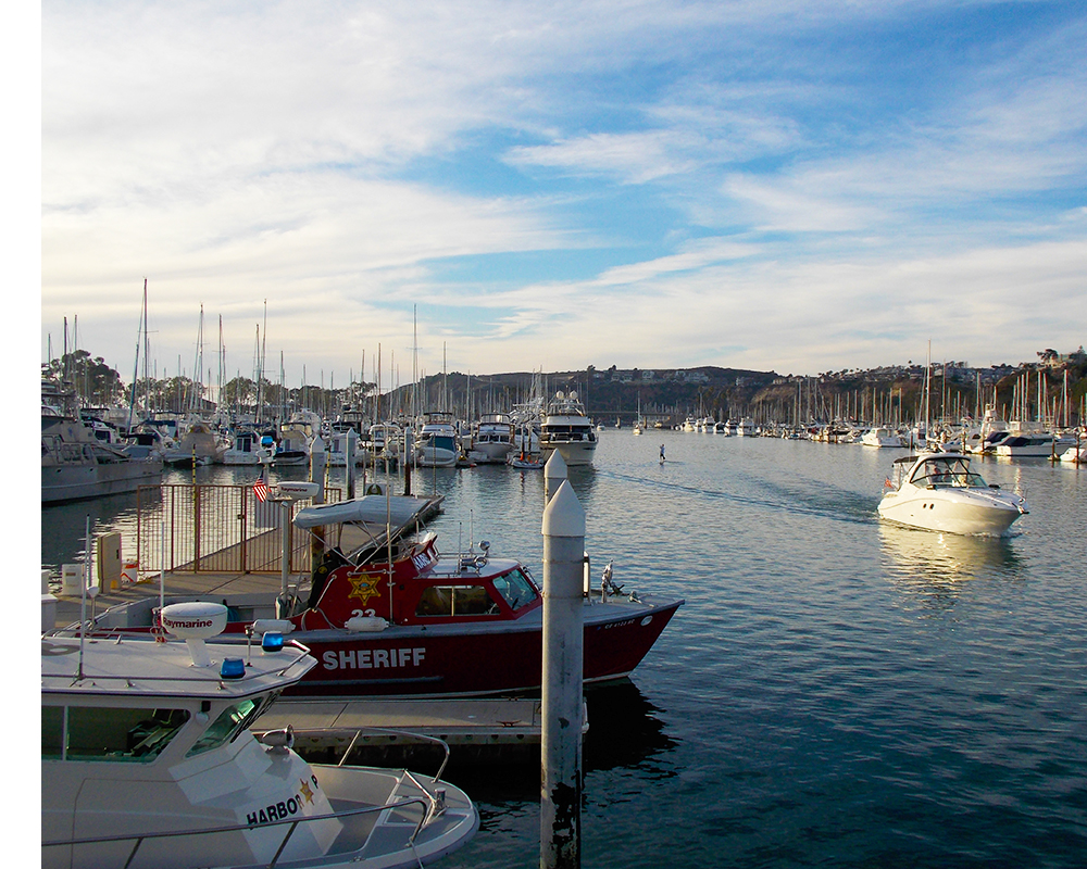 Dana Point is a city located in southern Orange County with a population of about 33,000 as of the 2010 census. Besides being one of few harbors along the Orange County coast, it is also a popular surfing destination with Doheny State Park at the south side of the harbor jetties.