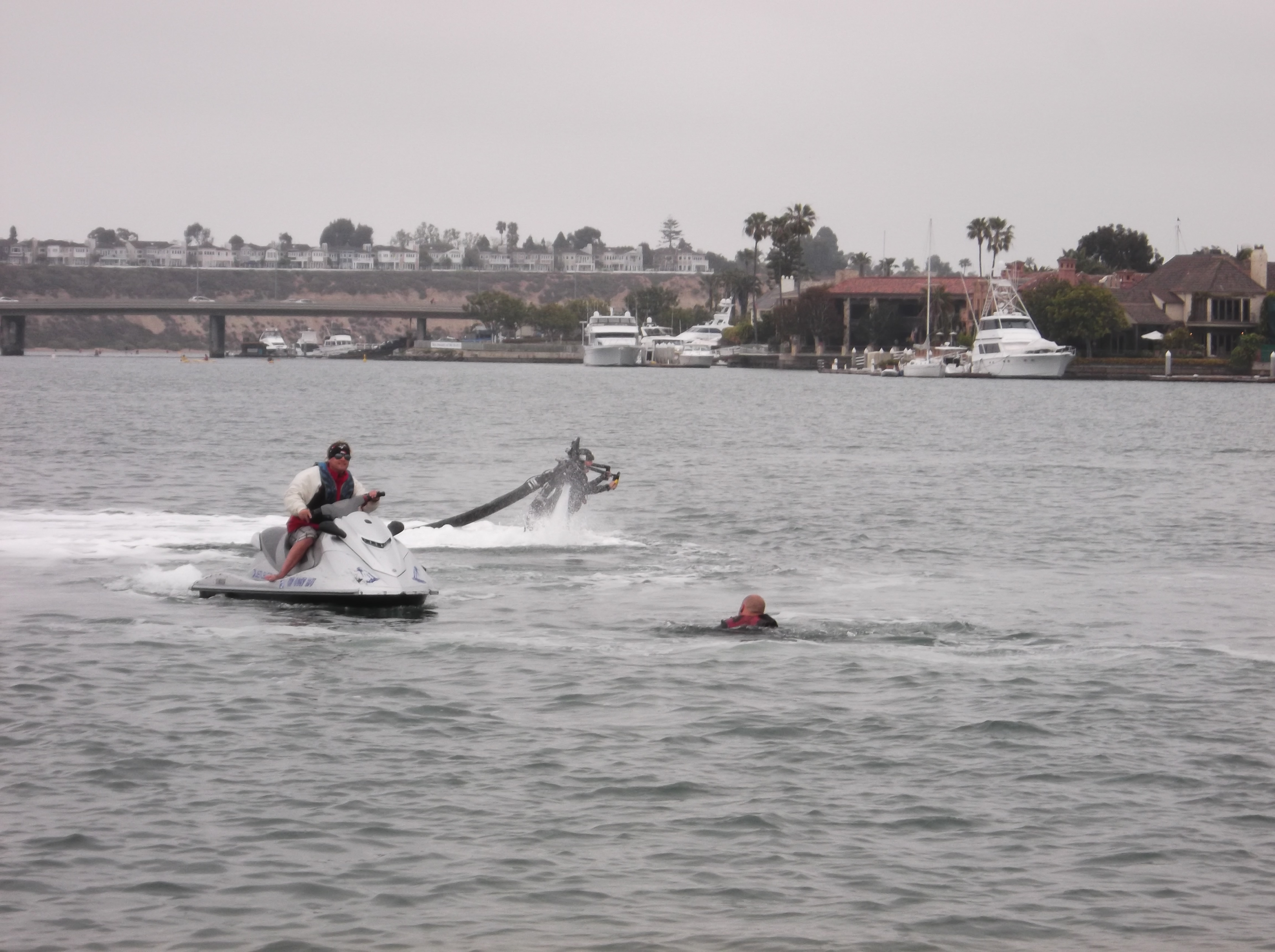 30 feet is as high as the jet pack would go, although we soon discovered that there is a huge learning curve and only the guy in our group actually made it over 2″ from the water surface. I thought that they had control of it and I was thinking how happy I would be as they floated me above the water with a birds eye view of the magnificent Newport harbor.