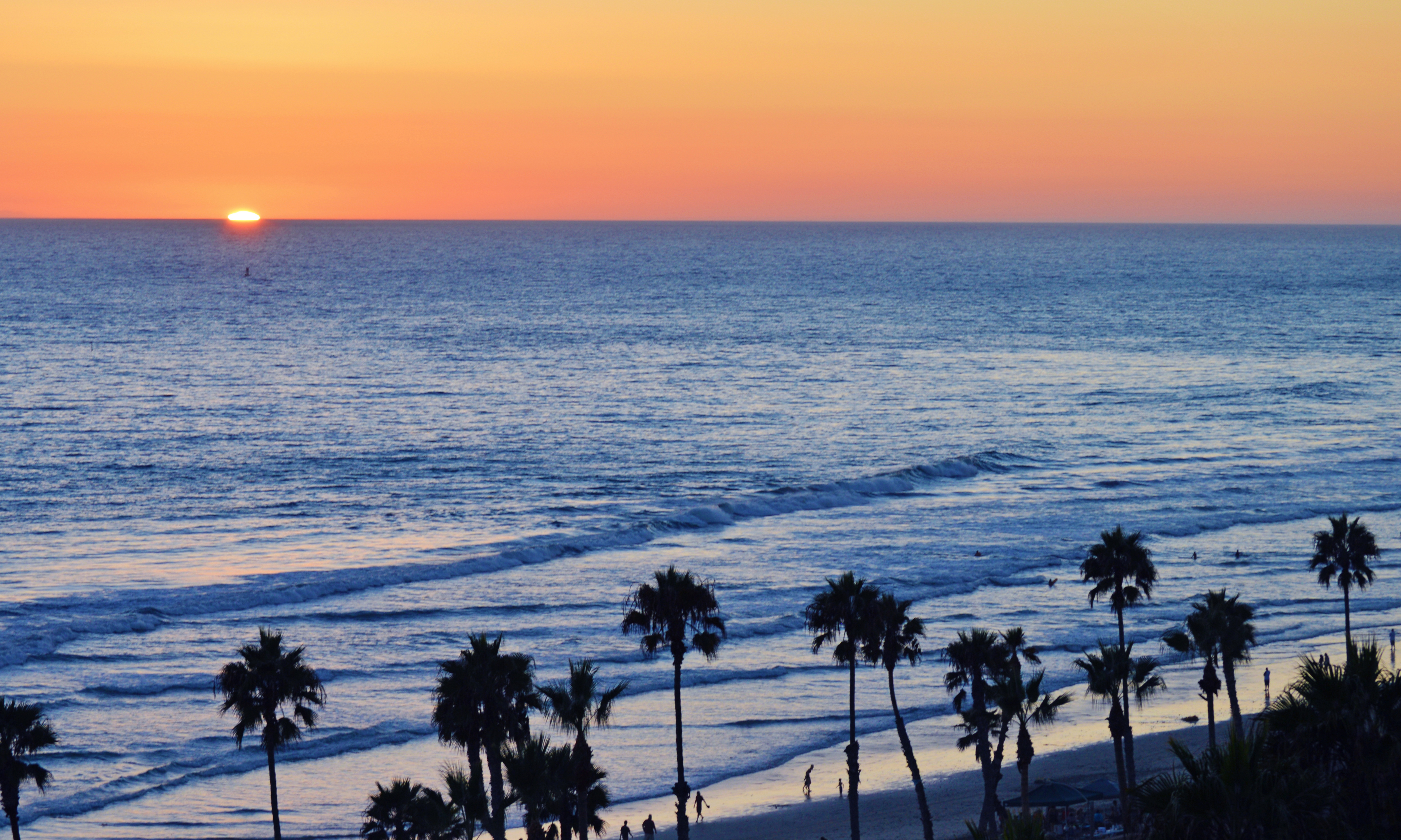 All our photos and videos are of the view from our room on the 6th floor or from the sky lounge on the 7th floor. We couldn’t get enough of the view. The double size sky lounge on the 7th floor is for any guest to use and offers spectacular views of the coast. Inside the room sits a table with chairs, a couch, and a flat screen to watch TV or movies. The real star is the outdoor patio where you get a grand view of the pacific for as far as you can see. There are two towers at the Wyndham so your view depends on what tower you are in. Either tower you will get a bird’s eye view of the pier and the harbor in the distance. On this night we could see as far as Catalina Island.