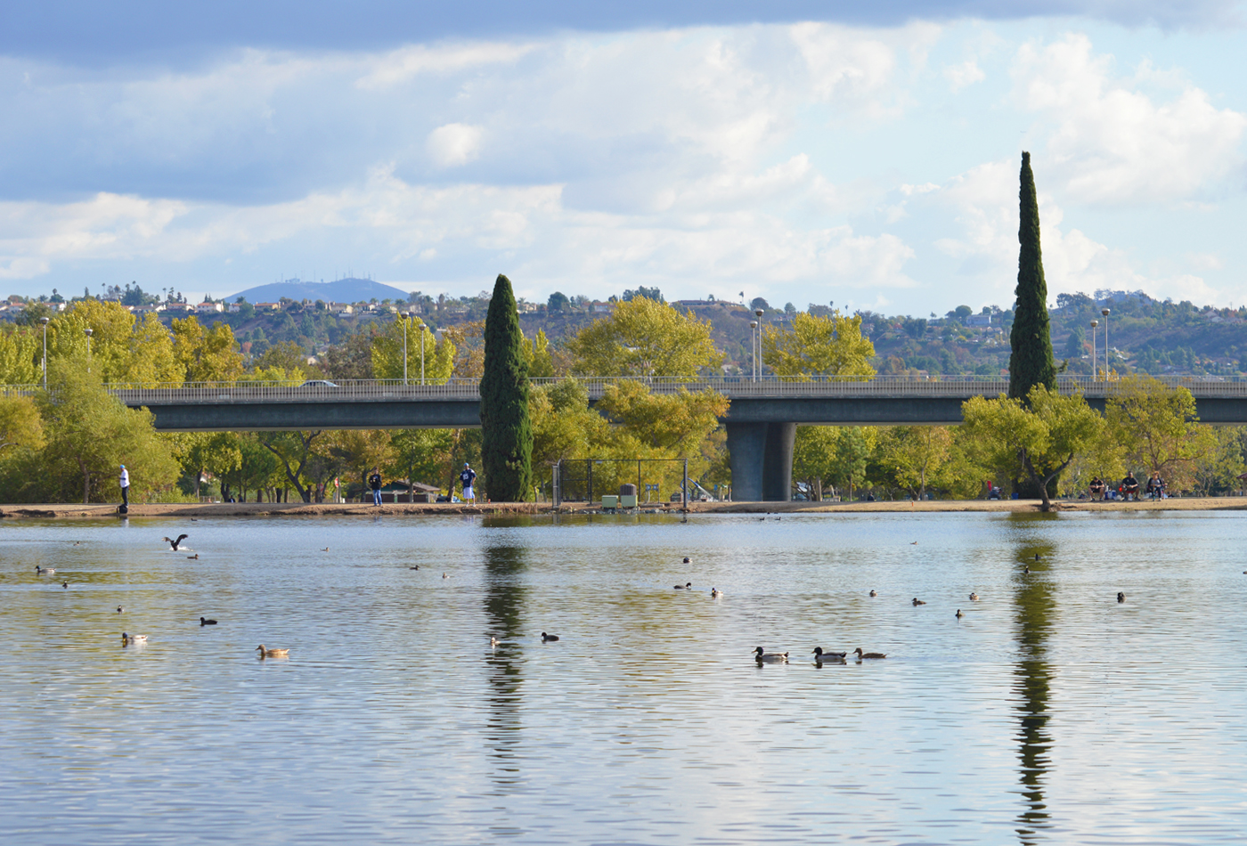 Santee Lakes is located in the east county just outside of San Diego, in the city of Santee. Along with the 190 acres of park and lakes, there is also a 300 site campground accommodating RV’s with full hook ups. A clubhouse sits nearby with two swimming pools(one heated) and a Jacuzzi. The pools are perfect as there is no swimming allowed in any of the lakes.