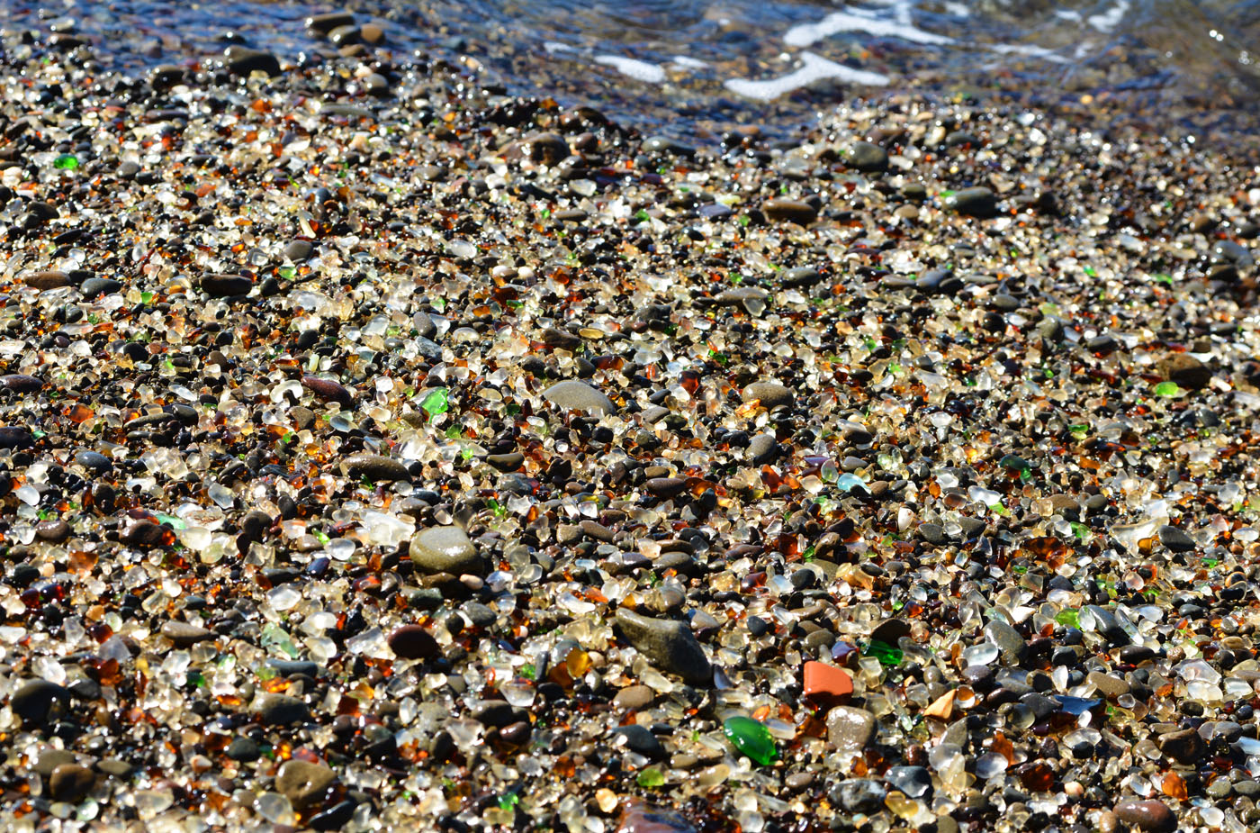However, the debris got trapped in the coves and everything was forced back to shore. Through the years, only the glass remained as well as some pottery and various other, harder materials. The glass that is still here today adds a beautiful backdrop against the rocky shore. It is funny how something so beautiful was created by trash.