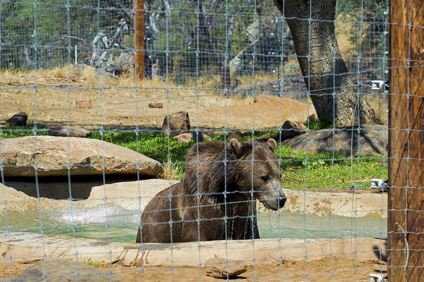 On to the bears which are a part of California wildlife. The sanctuary had a few different breeds including Black and Grizzly. The bears were brought out of their pens to hunt for the meat chunks that were earlier placed in their habitat. One bear bypassed the food and headed straight for the pool of water. The big beast was in heaven as it splashed around in the mid day heat. Again, you marveled at the size of these animals and it made me feel glad yet again, that I live in a city where my only concern about getting bit is by a mosquito.