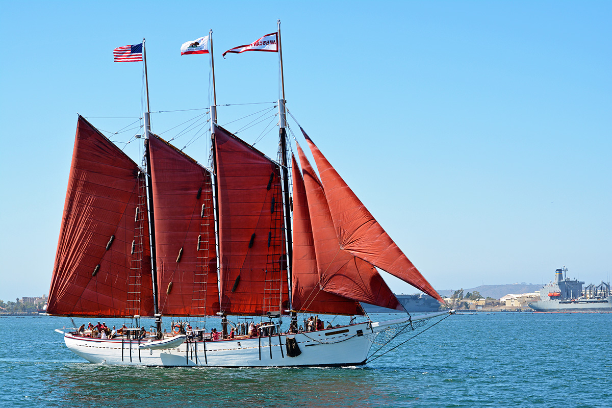 Speed boats and personal watercraft flew by with the huge military ships as their backdrop. A massive aircraft carrier moored across the bay reminded us that we shared these waters with an actual working naval port. As you looked south, the Coronado Bridge stood high and mighty hovering far above the sailboats that were gliding easily among the warm summer breezes.