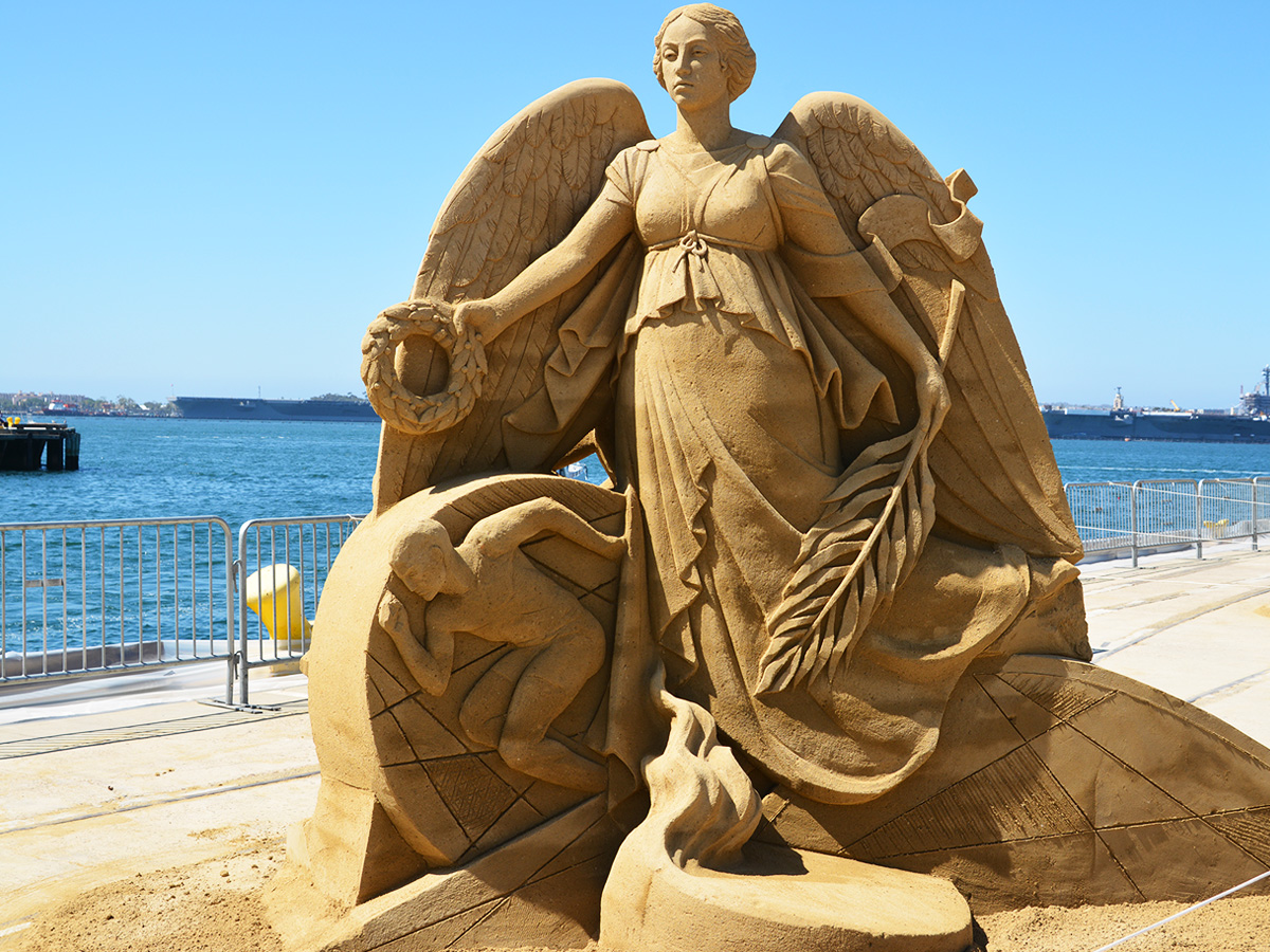 The Sand castle event was held on top of the ‘B’ street pier. Along with the event, local vendors displayed their goods, live music played on a stage, and food trucks were available with an eclectic mix of cuisines. At the sand castle competition, a few artists were still working on their masterpieces while others were completely finished. It is interesting to see them work at their craft as we took note of the tools, techniques, and the patience it takes to build something from a shifting substance such as sand. One 3D art piece allowed you to look through the middle to see the tiny figure at the end and I was in wonder on how they could build such large square structures out of sand. I remember trying to work on my own castle as a kid only to have it crumble when I tried to square off a wall. It is testament on how much these artists know about their medium and how advanced it has become from its beginnings as a childs activity at the beach.