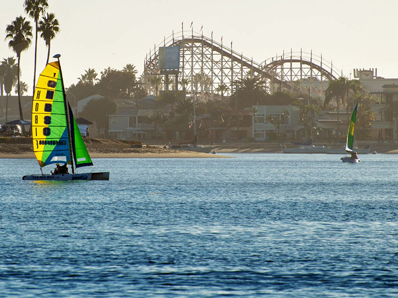 Mission Bay with the roller coaster of Belmont Shores in the background.