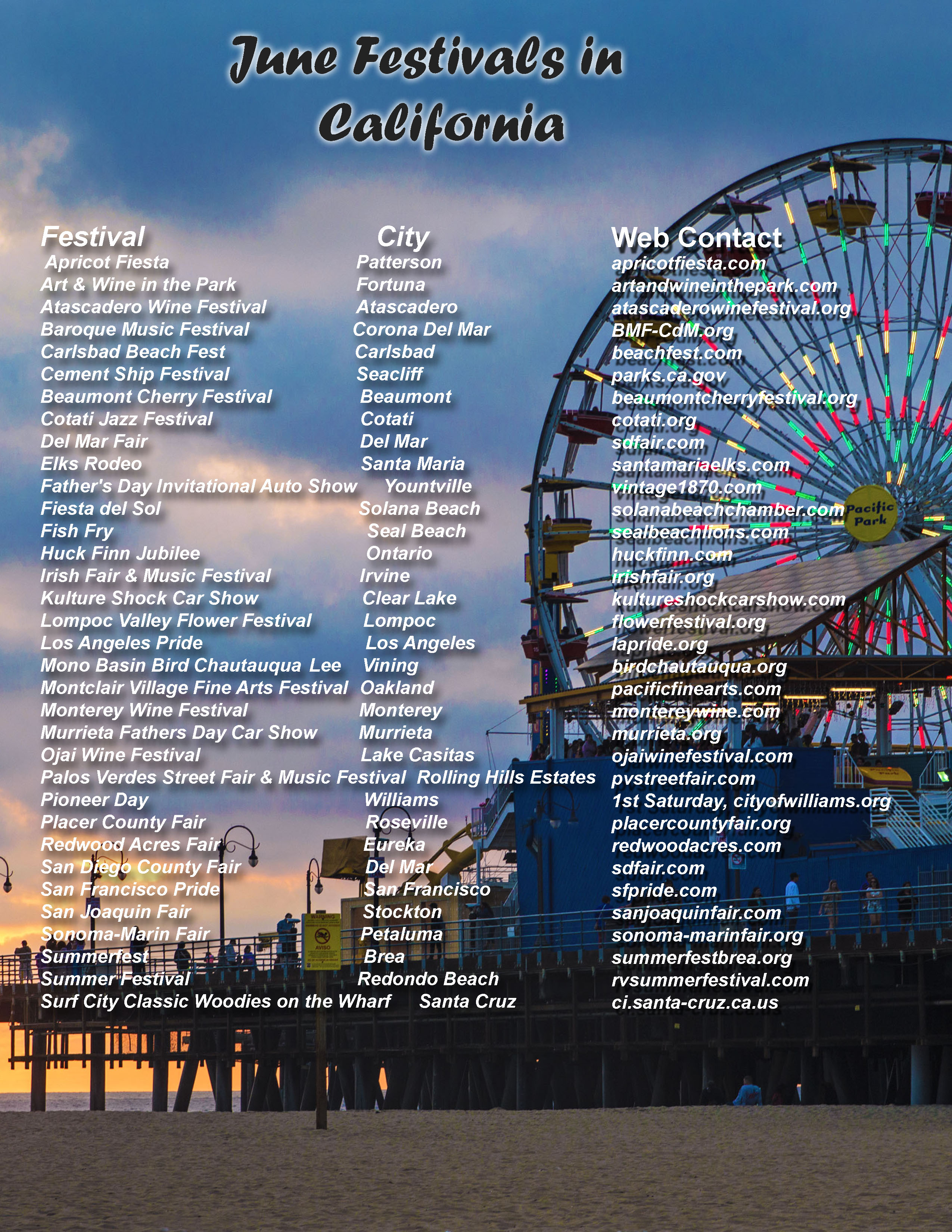 California sites, places, cities, attractions, events, excursions, for the day, weekend, or week.