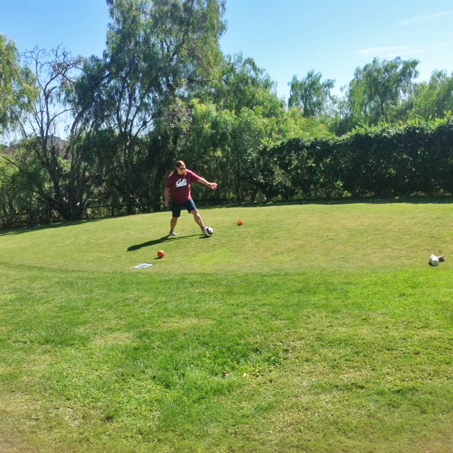 With instructions on where to go and what to look for, we excitedly walked to the first tee! I was asked to be the guinea pig and start us off with the first kick. It has been years since I kicked any ball at all. The vision in my head was of me doing a Charlie Brown type kick and totally missing the ball while flipping up in the air. Luckily that didn’t happen. I actually felt like I kicked the ball quite solidly.