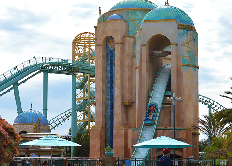 Because it wasn’t a hot day, we choose to bypass the water rides. Instead, some of us rode the Manta roller coaster and the flight simulator. The roller coaster was a fast spit ball of a ride that had the occupants twisting and turning around corners at various angles. There wasn’t that initial high drop but it made up for it in the speed!