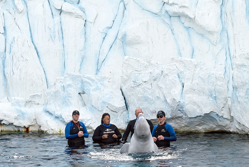 At an extra cost you can get up and close to the Beluga whales. Faces blurred out intentionally.