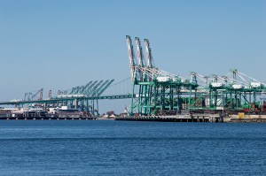There is no reference point and there are numbered berths everywhere. There are huge cranes as far as you can see that are working vigorously to load or off-load ships. Each set of cranes has a different color which could have been helpful as a point of reference but we didn’t take notice until later.