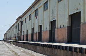 Further down the road we came upon even more abandoned buildings including a long structure with shipping bays as far as you could see. The shipping bays were empty and there were no trucks waiting to off load their goods. This was a ghost town. I could see why Hollywood would use this place, it actually looked like one big movie set.