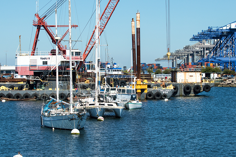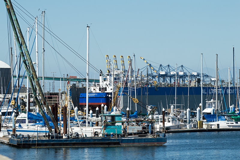 Nearby, yet far away enough from all the hustle bustle of the main port, sits the quaint Cabrillo Marina. Protected by a small jetty and filled with boats, this quiet marina sits in contrast to the larger ships that you can still see in the distance.