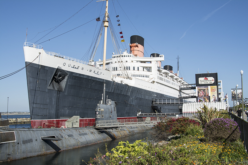 We just stayed a few minutes to admire and shoot a few pics of the legendary ship before us. The ship made its maiden voyage on May 27, 1936 from Southampton, England and was retired in 1967. Now it sits in Long Beach Harbor serving as a floating hotel and is available for tours. The hotel has restaurants cocktail lounges, swimming pools, shopping arcades, and authentic decor which you may or may not like. Only portholes serve as windows so there is not much of an ocean view from your room. That can easily be remedied by heading on the deck for 360-degree views of the harbor and city.