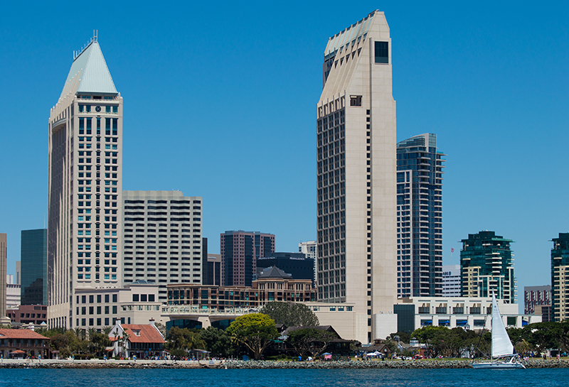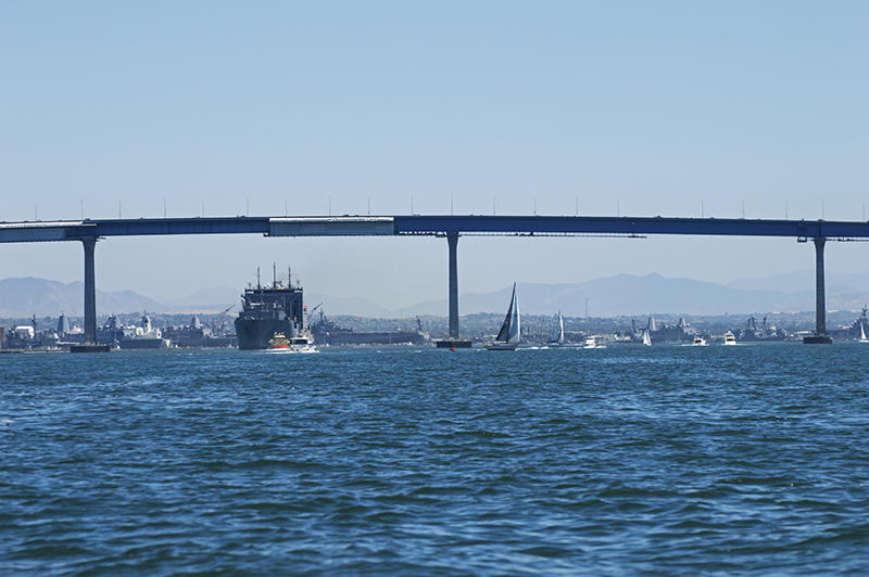 Turning toward the city, we soon saw its amazing waterfront skyline equipped with hotels, condos and, a few commercial buildings. Just beyond the city, you get your first view of the subtle curve of the 2.1 mile long Coronado Bridge.