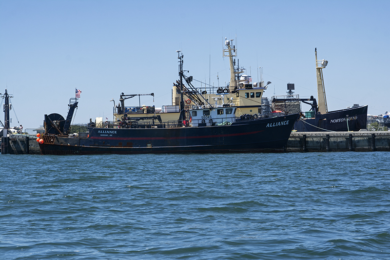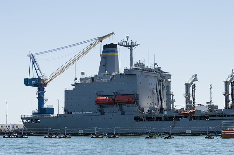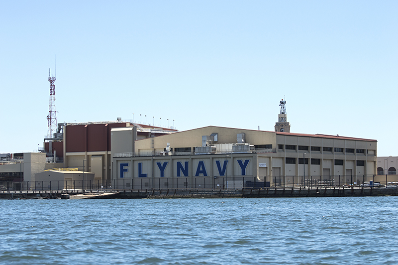 Naval ships,buildings on North Island and fishing boats across the bay.