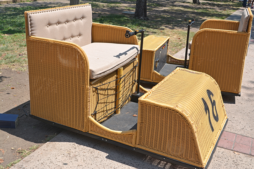 Once the steering and brakes were complete, it went out for its first test run on one of the quiet streets nearby. We tested on a steep hill that got the cart going about 30 miles an hour. Happily, the brakes held and the steering worked, just a few minor tweaks and that part of construction was done.