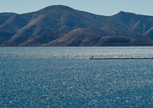 Diamond Valley Lake (also known as The Diamond), is one of the largest man-made reservoirs in Southern California. It has a capacity of 800,000 acre feet, 260 ft deep, and with over 4,500 surface acres. It holds enough water to meet the area’s emergency drought needs for at least six months. The lake features three earth filled dams located on either side of the valley and one on the north side.