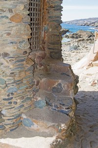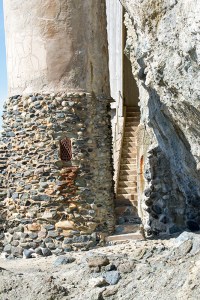 The lower half was built of stones and a staircase leads you right to the rusty door which of course is locked. A small metal window shows its age with years of salt water damage.
