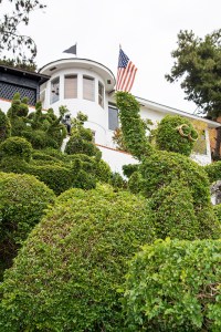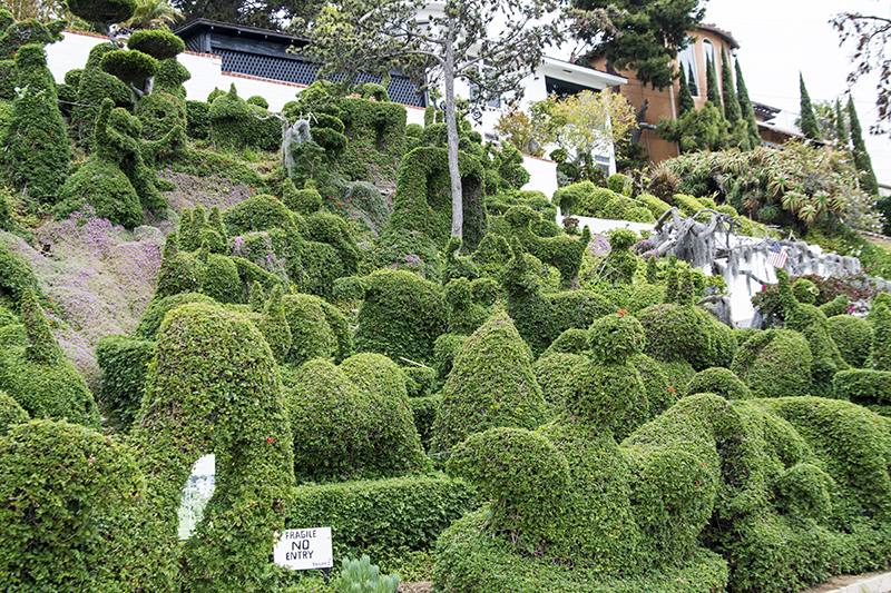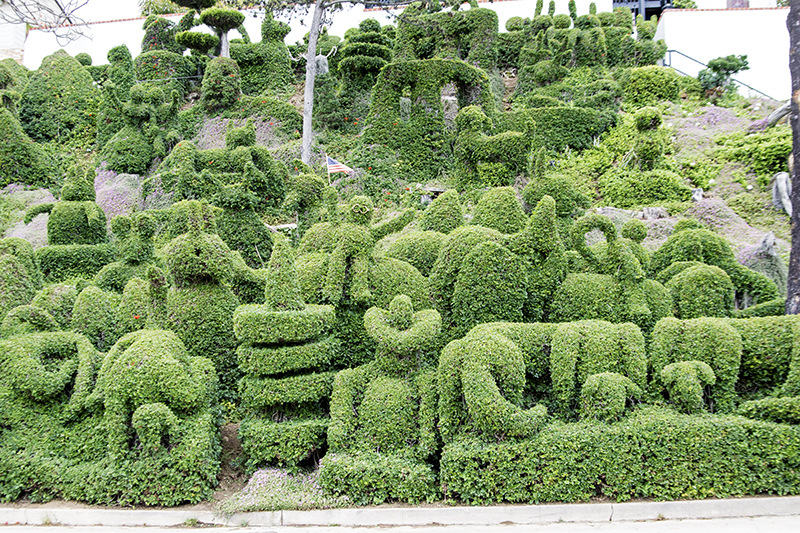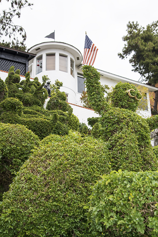 For the past fifteen years, the Harpers have been shaping the bushes or shrubs in their front yard into all sorts of forms including, animals, surfers, dinosaurs, whales, and much more.