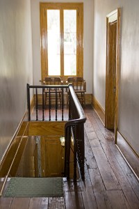 It seems that there is a female apparition, ghost or whatever you want to call her, that stands on the ninth stair and proceeds to push or trip people on their way to the second floor. As it turned out, a few minutes earlier, we just missed a man that was walking up the stairs and guess what? He tripped on the ninth stair!
