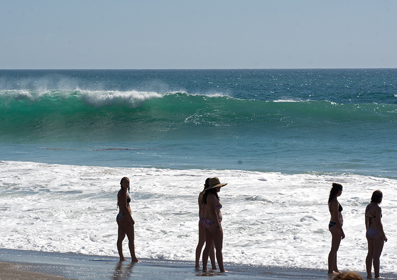 On this second weekend in September, the day was bright making the Pacific Ocean sparkle in a bluish green hue. It was the perfect kind of afternoon where everything looked more colorful. The water as mentioned ,had the prettiest tint, the coast line was as clear as I have ever seen it. There were multicolored umbrellas looking extremely vibrant, and even the sand had a sparkle.