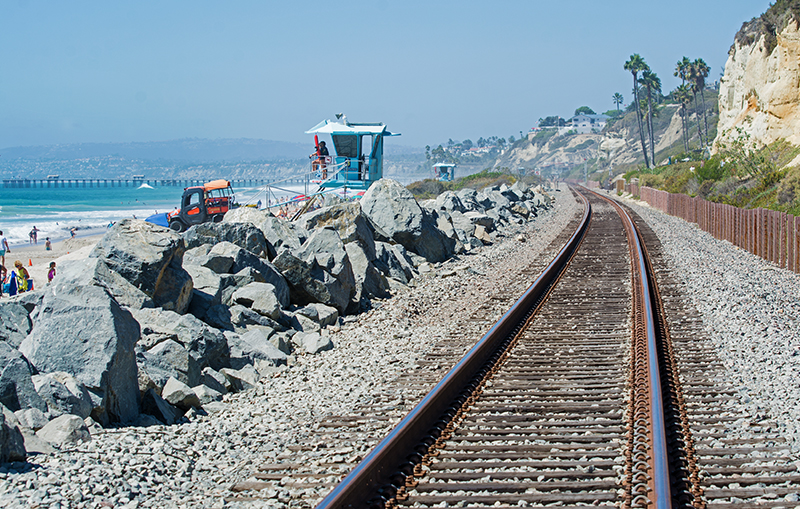 To get there and after you park your car, you walk by the Calafia Beach Café and head toward the waves. There is a pathway that allows you to safely pass over the railroad tracks where Amtrak and Metrolink pass by from time to time.