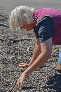 Staycationer JoJo looking for sea glass in all the tiny pebbles