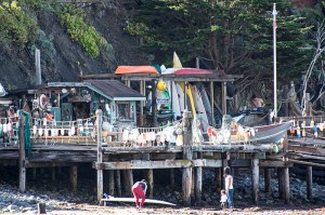 Looking north from Pacifica and a home perched right on the beach.