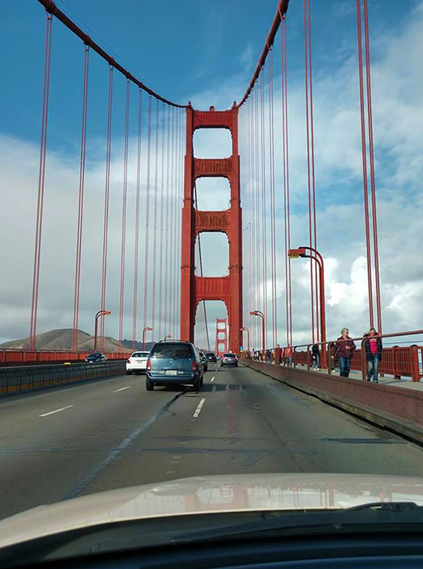 After a few minutes you caught your first glimpse of the Golden Gate Bridge as the tall towers peaked above the hills. Soon we would be seeing it in all its glory and driving over it shortly after.