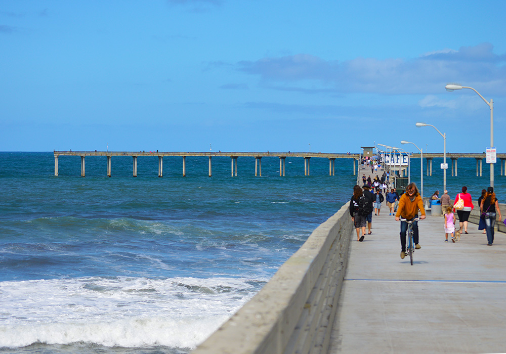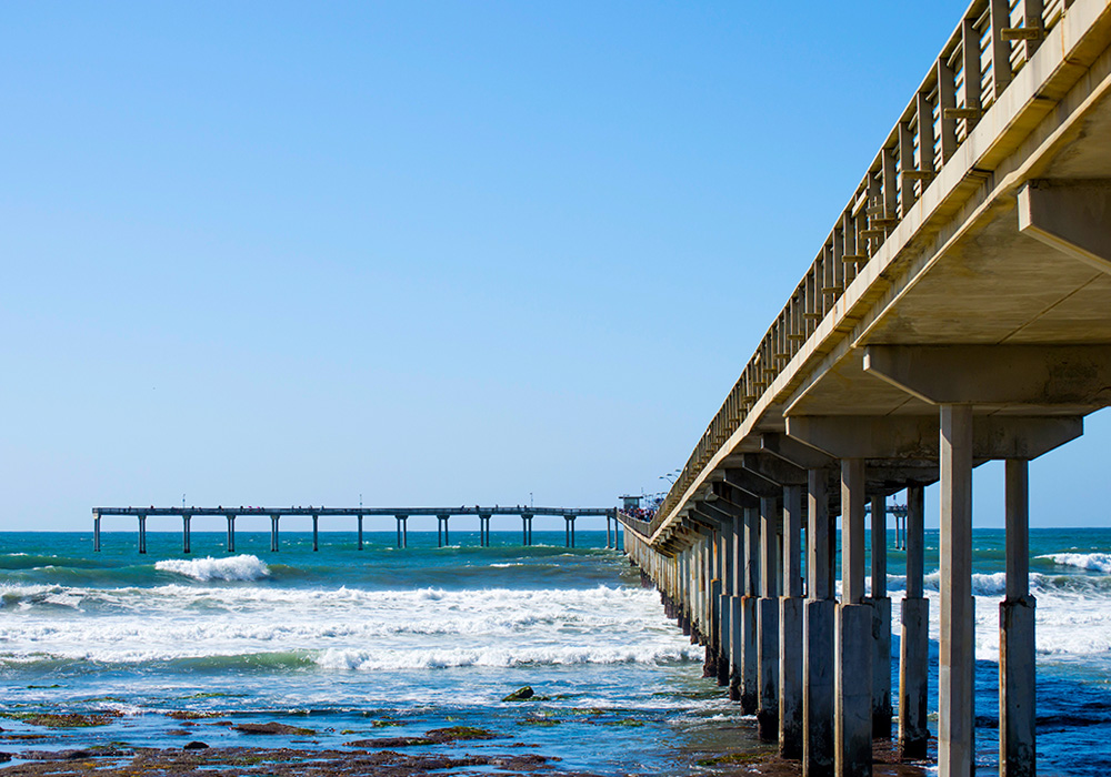 Strolling the Ocean Beach pier you get a great view of the unique Crystal Pier in the distance, while, south you can see the Coronado Islands. You can even see one of the attractions at Sea World, the 400 foot tall sky tower.