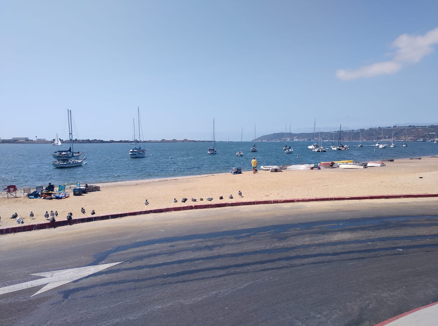 There is a small beach down the way and a boat ramp that acts as the starting and ending point for the amphibious truck/boat called the Seal. The bay provides plenty of entertainment while you watch every size boat cruise by and on this day, included a massive naval ship heading for North Island.