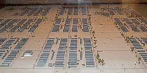 A display in the visitor center shows the rows and rows of barracks and other buildings