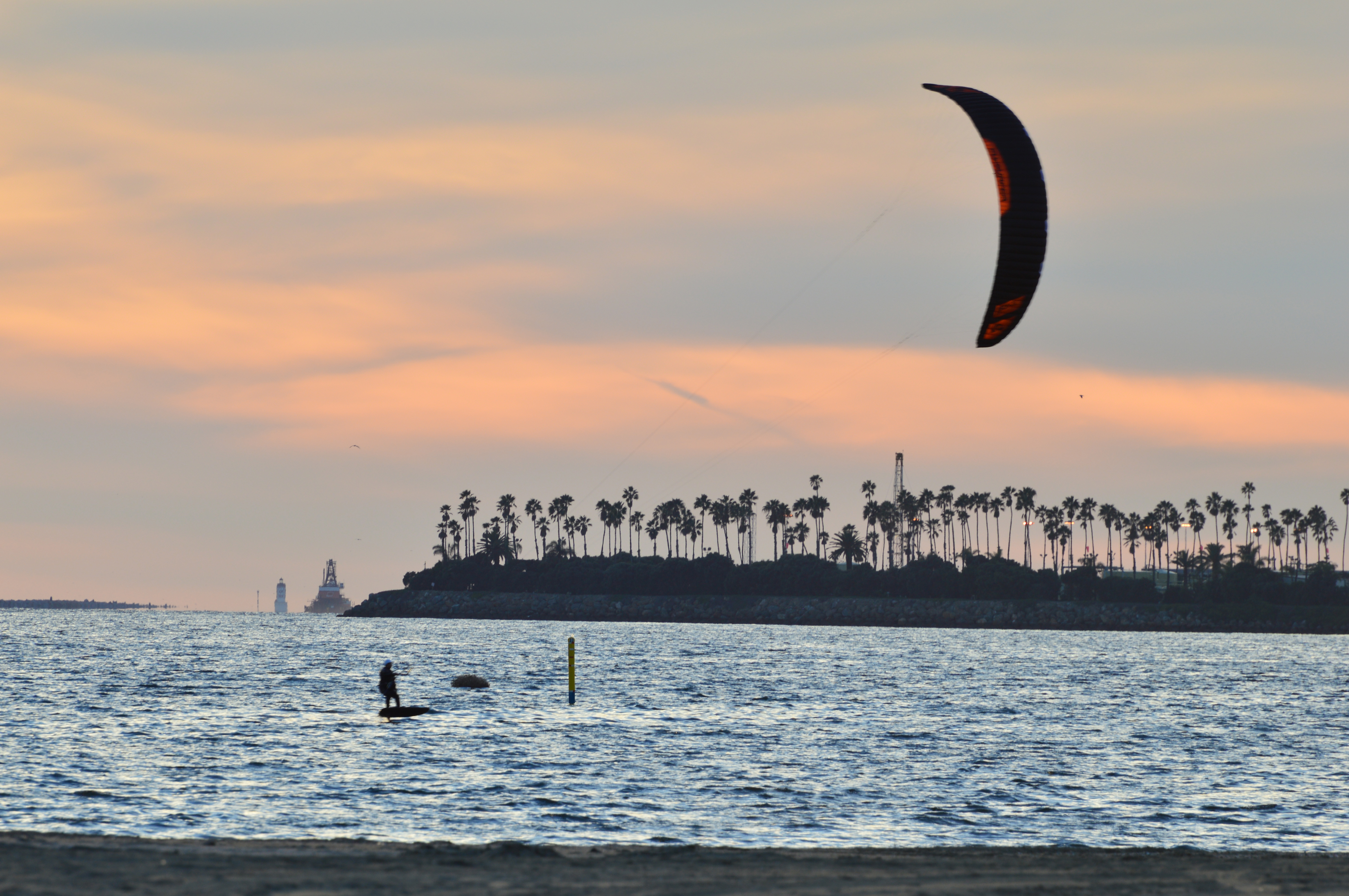 This peninsula has the beautiful Alamitos Bay on one side and the Pacific Ocean on the other. A man-made breakwater keeps the waves from reaching the shore, so don’t expect to be doing any surfing. On most days the water is calm, but the area can get very windy which bodes well for a different kind of sport.