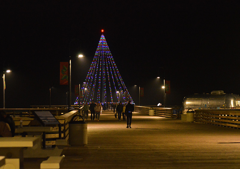 With belly full, we took one more stroll on the beach to say goodbye to the Christmas tree lights at the tip of the pier.