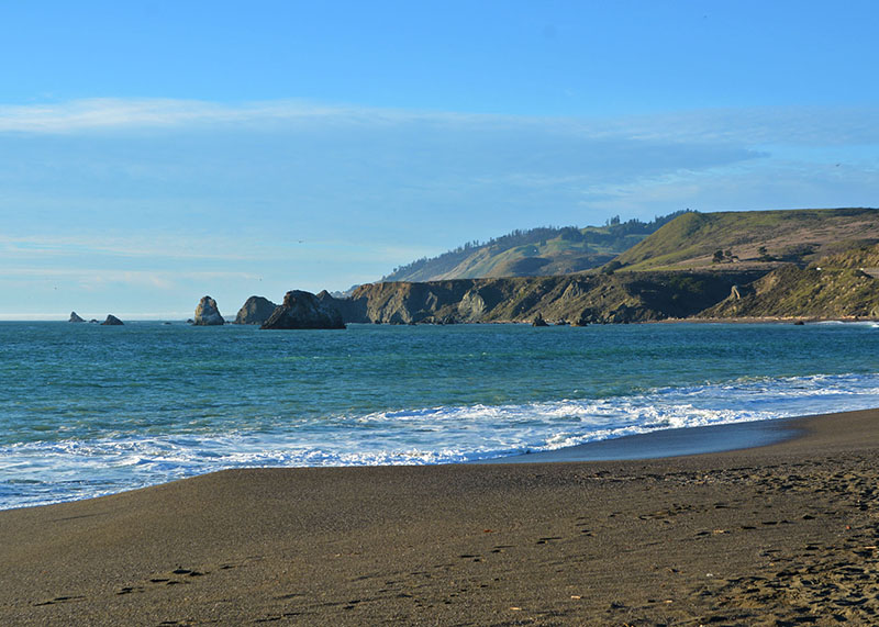 Whenever you come in from an inland route and reach the coastline up here in Northern California, it is just enough to take your breath away. The rugged shoreline is filled with rock formations, tiny coves, and beaches overflowing with small to large pieces of driftwood. On this day the sun was shining and illuminating the Pacific Ocean to a beautiful sparkling blue.