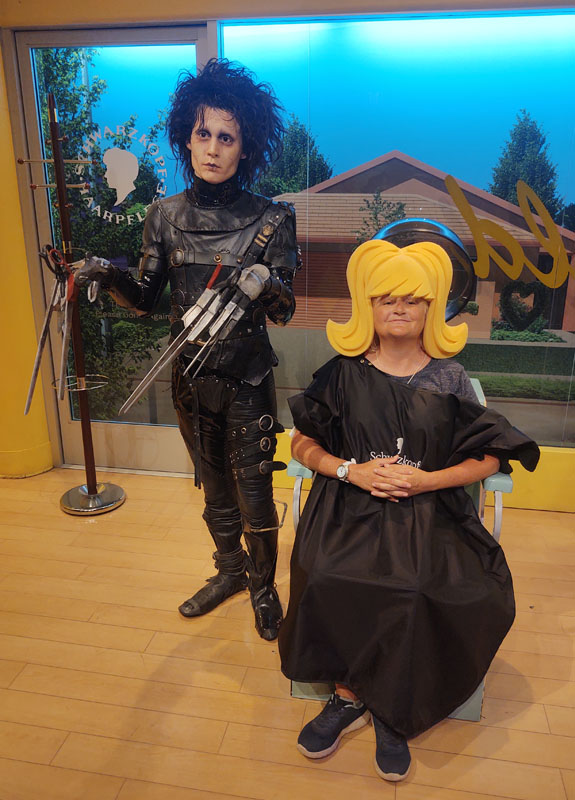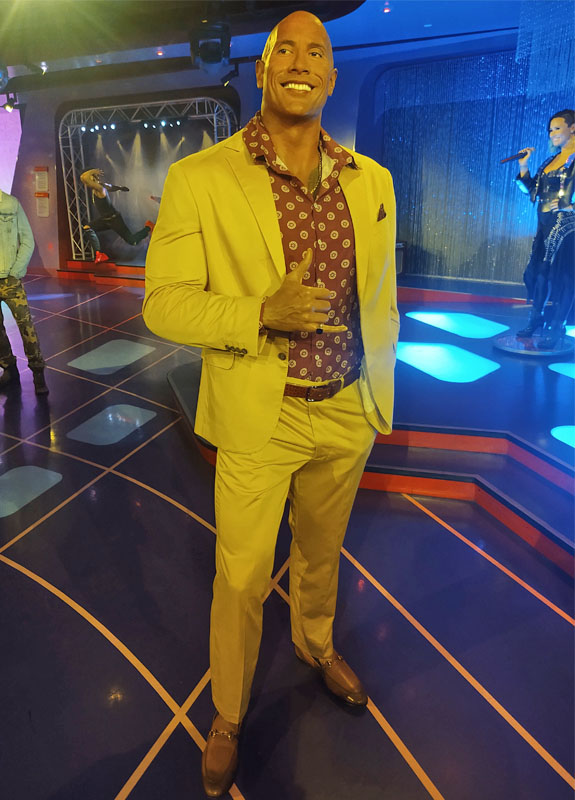 As you proceed through the museum, you are greeted by stars, musicians, singers, etc. What really impressed me were two things, one, that you can get close and interact with the wax statues. In some cases, props are set up for you to use for photo opportunities. As an example, you can sit on the bench with Forrest Gump, put on gloves and box with Rocky, wear Hannibal Lectors straight jacket. Or, you can ride on a camel with Lawrence of Arabia, dance with J-Lo, look into the eyes of Angelina Jolie, or sit in a chair under the scary scissor hands of Johnny Depp. It wasn’t just looking at wax figures; it was interactive and fun to see.