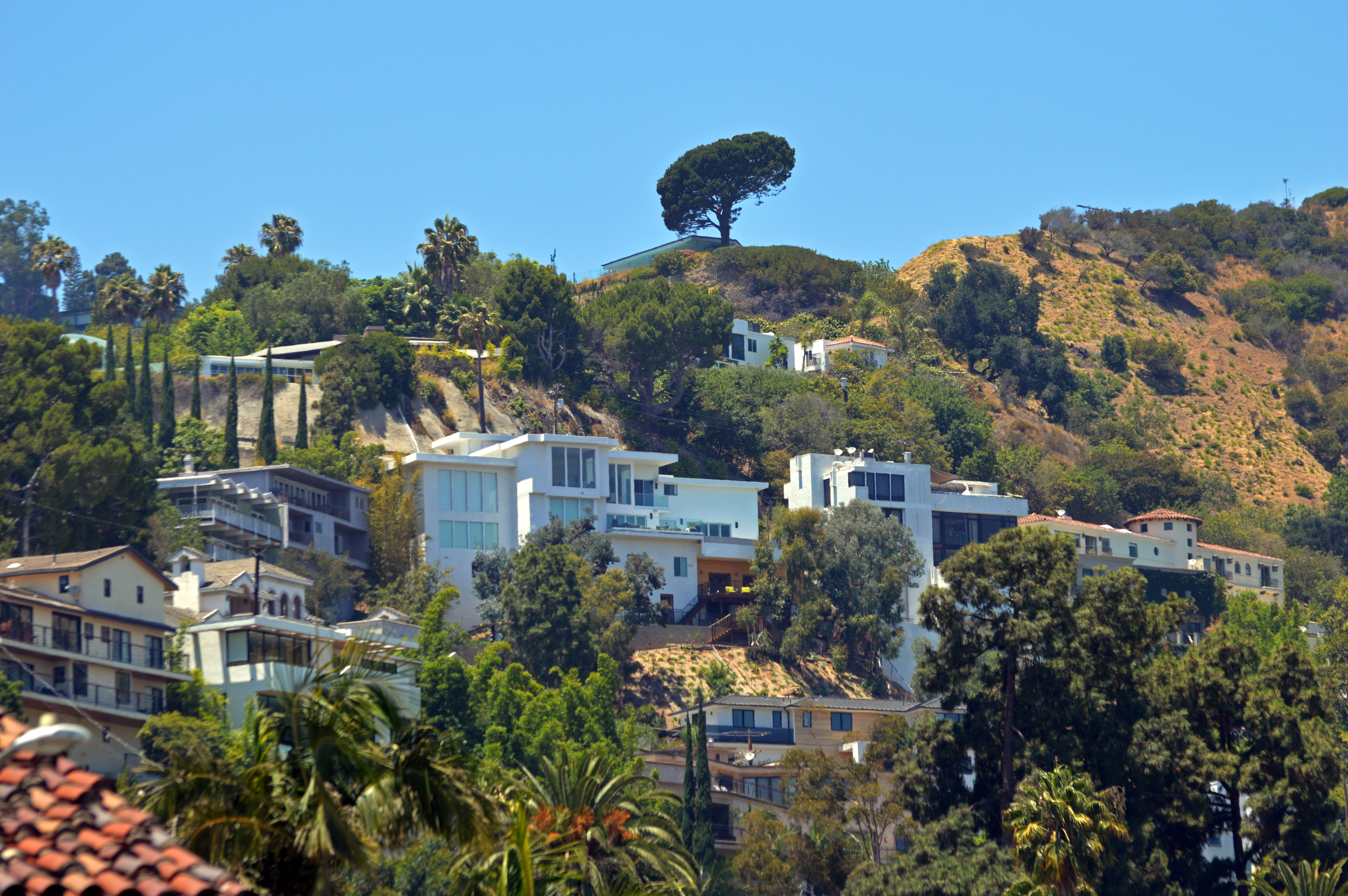 Along Sunset Blvd., you will also see side streets that take you up into the hills to view the movie star homes. This wasn’t on our bus tour, but I did a side trip to show my guests this exclusive area. We drove by Beverly Hills and Bel Air, two of the most well-known areas. Most of the mansions are hidden behind gates, large trees, and shrubs, so, not much to see. However, if you look closely, you get glimpses of some of the massive estates. Also, you can see these mansions on hill tops overlooking the Los Angeles Valley and Pacific Ocean.
