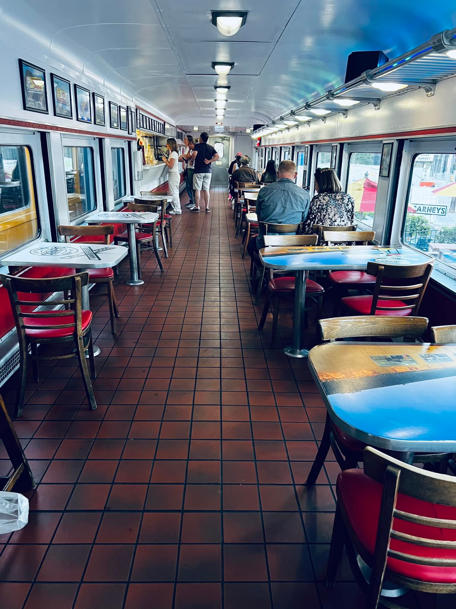 For simple food, there is Mel’s drive -in, and where we ate, Carney’s. Carney’s is distinct as it is in an actual old Union Pacific locomotive. You can eat outside or in the dining car. My burger was excellent, and you can sit along Sunset watching the fancy cars drive by.
